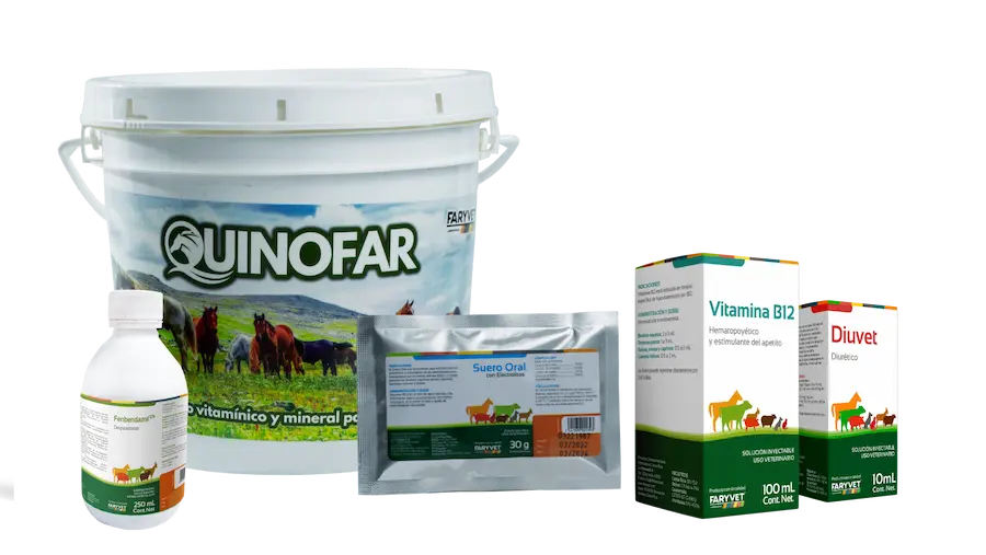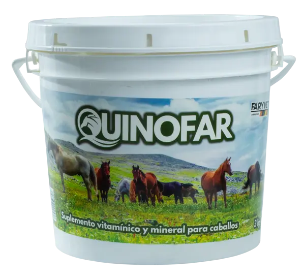 Quinofar es un suplemento energético, vitamínico y mineral diseñado para cubrir los requerimientos nutricionales de los equinos, mejorando su desempeño, condición física y salud general.